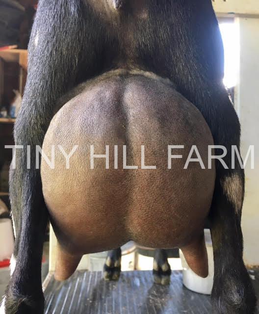 Bowie is a young buck with a pedigree built on performance, structure, and long-term consistency. His dam, SG THE TINYHILLFARM’S SUPERLOIS 6*M, has been on the ADGA Elite list since 2016 and earned a place on the 2020 Top Ten Breed Leader list—ranking 5th in milk and 6th in protein. She appraised VEEV88 even while stale, a testament to her strong structural correctness. Lois is sired by SG SUGAR MOON V HIGH ROLLER ++*B, a buck widely respected for consistently producing high-performing daughters across herds. He also scored VVV87 linear appraisal with E’s in head, rear legs, and back!  Lois’ dam, SG OLD MOUNTAIN FARM MISHELL ANET 5*M, scored VEEE89 and is known for passing down excellent mammary systems and longevity. She has four daughters in the 90th percentile or higher, including two with SG titles.